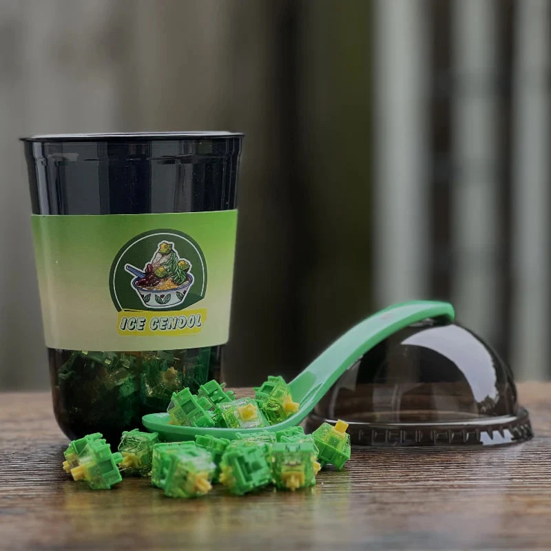 The Ice Cendol is the latest switch in our Shaved Ice series inspired by a childhood favourite dessert thanks to all the Malaysians and Singaporean in Perth. It’s been a long way to get here, originally planned to be manufactured by Keygeek, we weren’t happy with the sound profile and the appearance of the transparent nylon top housing… so I enlisted Rassles our resident Kiwi staff and switch expert and we manufactured with HMX, the most hyped manu in 2024, to create a unique material combination to create something that some have described as MX Black-ish without the scratch-ish.